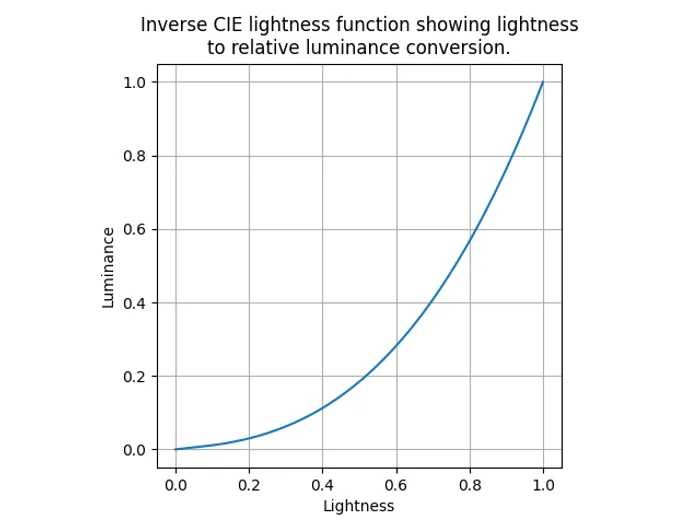 # Equation from https://www.photonstophotos.net/GeneralTopics/Exposure/Psychometric_Lightness_and_Gamma.htm lightness *= 100 # Convert to [0, 100] to work with the equation if lightness <= 8: return lightness / 902.3 else: return ((lightness + 16) / 116) ** 3