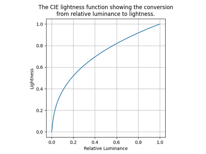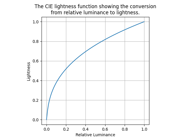 Instead of the CIE lightness function for linearize perceived brightness, some people use the gamma function instead. The gamma function was designed to convert from a CRT voltage to the luminance4. It just happens that the Gamma function is very similar to the CIE lightness formula above and gives you “good enough” results in many cases.