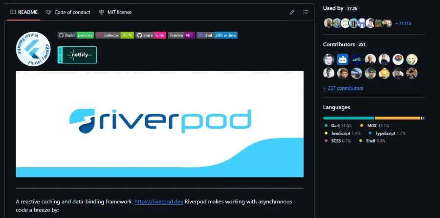 A screenshot of the Riverpod repository on GitHub.