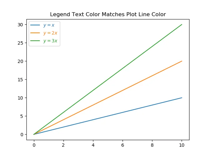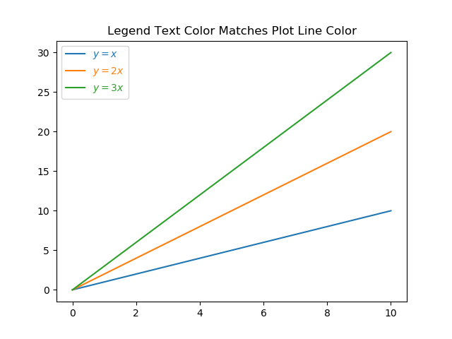 plt.savefig('legend-text-color-matches-plot-line-color.png')This will produce a plot which looks like: