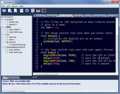 MariaMole is an IDE that runs over the Arduino install. I think it’s main benefit is that it allows you to write code in a proper file/library structure (which is a serious downside to the native Arduino IDE). It provides the Workspace/project/file window that is a default to any good IDE.