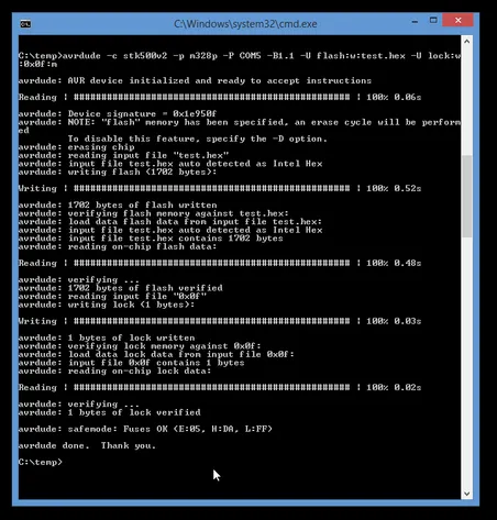 AVRDUDE (or avrdude) is a popular, open-source, third-party (i.e. non-Atmel) command-line utility for programming Atmel microcontrollers.