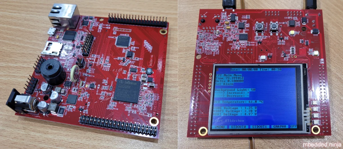 There are a number of development kits available for the AURIX TriCore family. Infineon makes a number of them which include a TFT touchscreen and a TC3xx MCU.