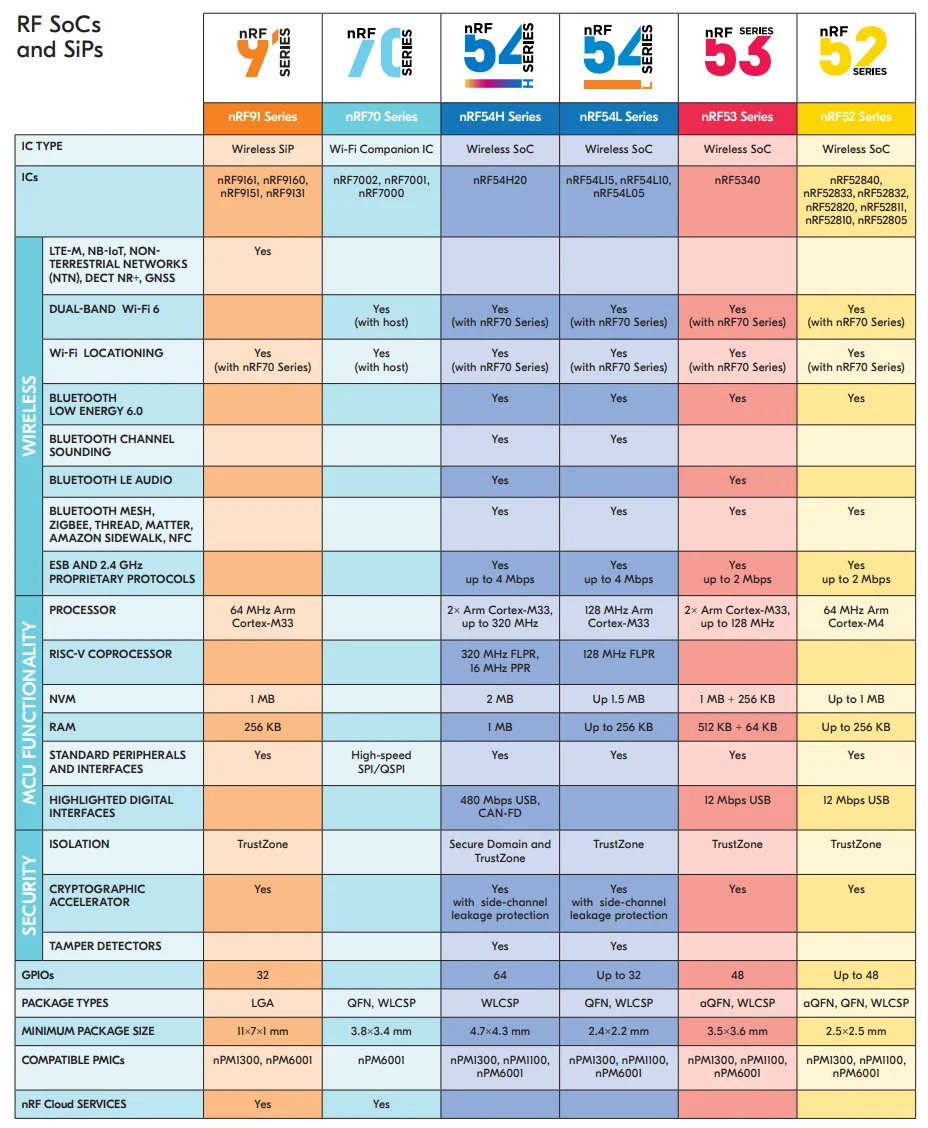 Nordic Semiconductor (2024, Dec). Product comparison table [pdf]. Retrieved 2025-02-12, from https://www.nordicsemi.com/-/media/Publications/WQ-Product-guide/Nordic-Product-Comparison-table-WQ-Dec-2024.pdf. ↩
