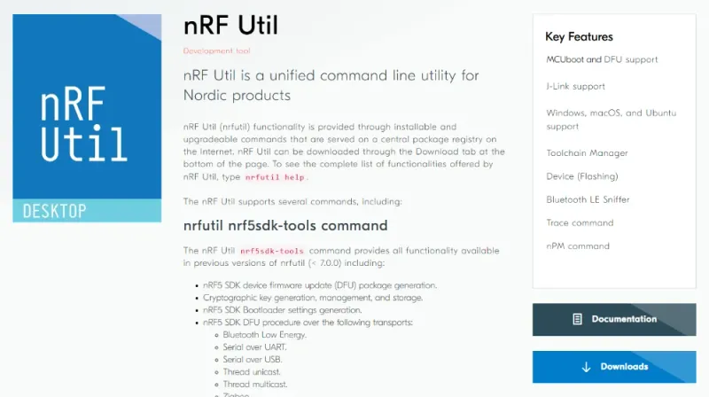 nRF Util (nrfutil) is a Python library and command line tool for programming and debugging Nordic Semiconductor MCUs.