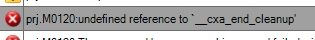 and/or the reported error from PSoC Creator saying undefined reference to __cxa_end_cleanup.