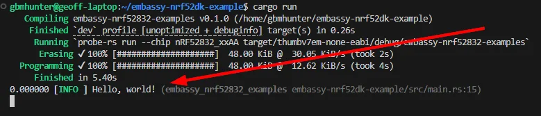 [env]DEFMT_LOG = "trace"The runner = line tells cargo what to do when you run cargo run. This will be used to program the nRF52 DK.