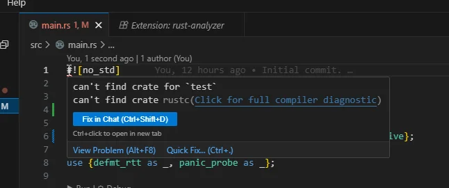 Logging is trivial to add to this project. First, we need to import defmt with: