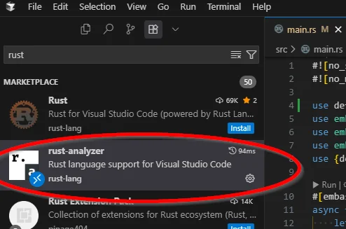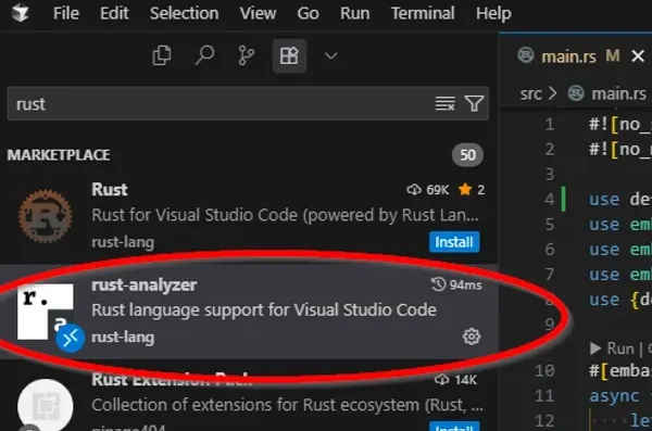Install the Rust Analyzer extension for VSCode. Without this, VS Code will give you syntax highlighting for Rust code, but not much else.