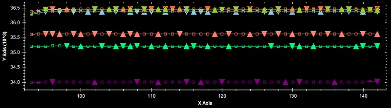 A graph on noisy, but stable data showing problems with maxima and minima detection without thresholding (false detections).