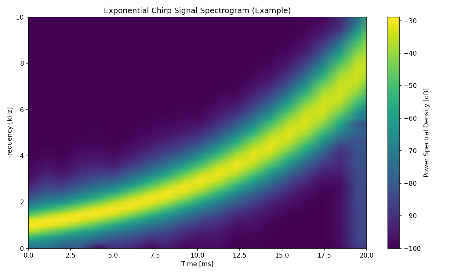 Chirp signals are often used in radar and communication systems due to their favourable properties, such as constant amplitude, good autocorrelation properties, and resistance to Doppler shifts. The low power RF communication protocol LoRa uses chirp signals (specifically, a proprietary form of chirp spread spectrum where each symbol has a different starting frequency) to encode information.2