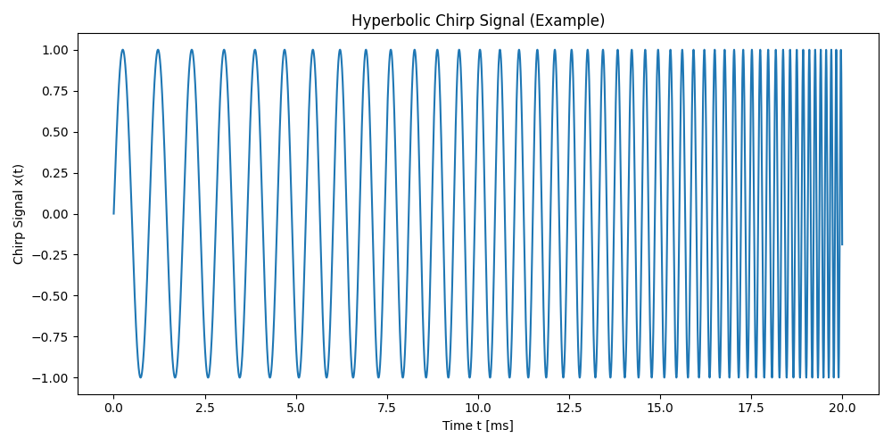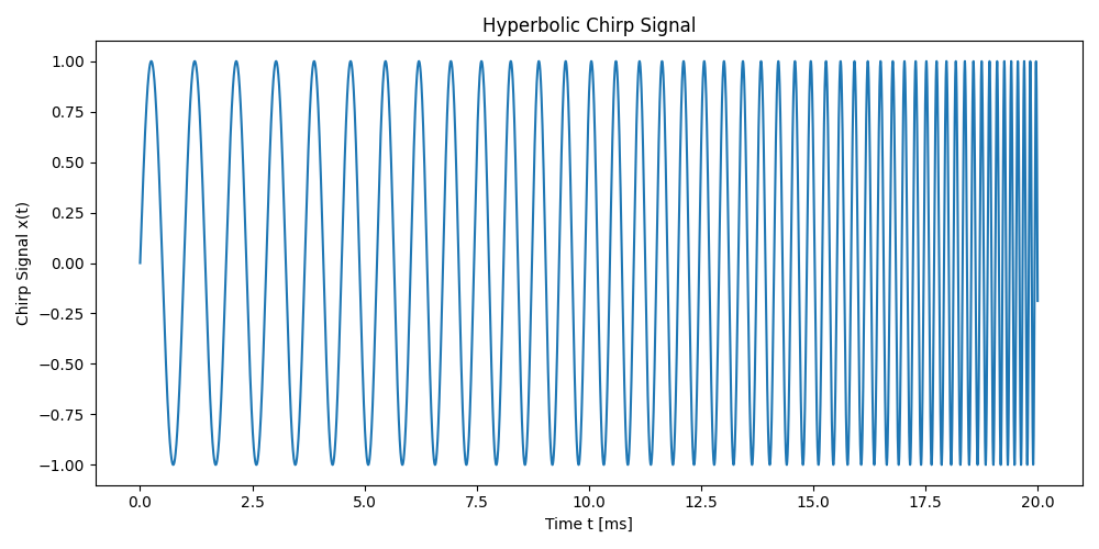 The frequency of a hyperbolic chirp is given by the following equation:3