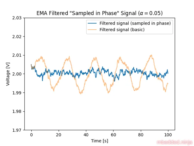 So far, we have discussed ways of solving the problem in firmware. This is great if you have already made the hardware and it is too expensive to change it. It’s worth mentioning though that one of the best approaches is to just add an anti-aliasing filter to the ADC input.