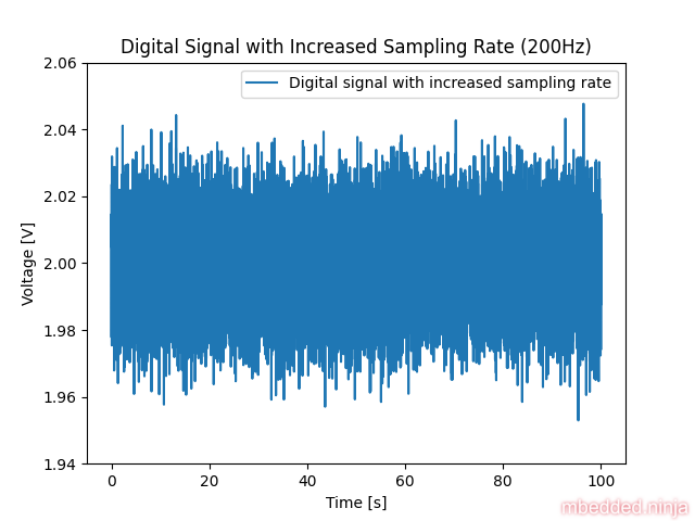 We’ll use a simulation to explore the problem. Let’s pretend we are measuring a voltage outputted from a temperature sensor. The temperature is currently not changing, but we have two types of noise: