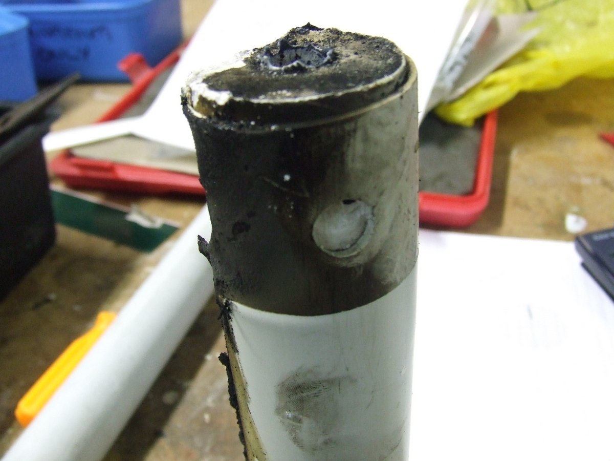 Motor worked successfully and propelled skateboard across the concrete. Average speed over the first second was 40km/h. Burnthrough of PVC pipe occurred 40mm from the nozzle end just where the plaster of paris stopped and the thermal sleeve began. Made a hole 25x3mm and caused the skateboard to do a 360° spin 1.0s into travel. Plaster of paris nozzle was pushed out by 2mm. One of the lugs had snapped of. Nozzle was very close to being blasted out. 4x11mm holes around the circumference of the pipe produced the lugs when the plaster of paris was cast. End cap unharmed. PVC pipe slightly deformed due to heat. PVC pipe was very soft just after firing.