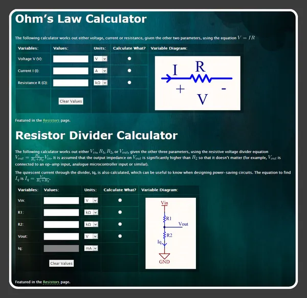 The calculators now have their own [page](/electronics/general/online-calculators), which shows the collection of calculators that are used on the electrical pages of the [CladLabs site](www.cladlabs.com).