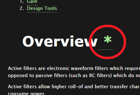 - Lately, a strange asterisk has popped up next to all page headings. Clicking it takes you almost back up to the top of the page. I think this might have something to do with an upgrade to the Better Anchor Links plugin I use to automatically create a “Contents” section at the top of the page which has hyperlinks to all the the pages headings.