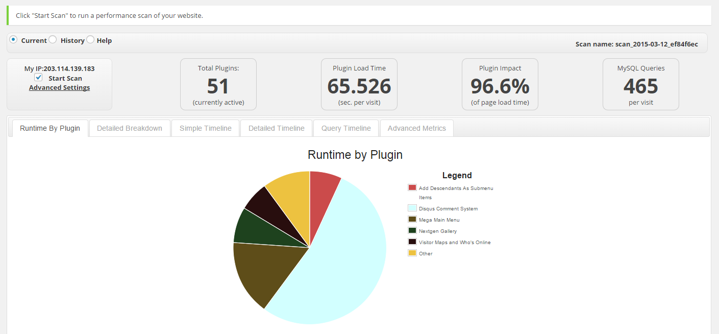 I have installed the P3 (Plugin Performance Profiler) Wordpress plugin, which should help me identify any issues with the plugins currently running on this site. Yes there are many of them, 51 are currently active. This is what the plugin had to say about things: