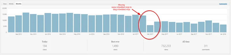 to redirect to the new URL (you can click the above links if you don’t believe me!), a significant drop in traffic was