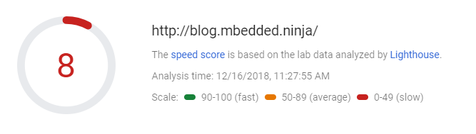 After moving to Hugo, I saw a huge increase in page load time performance. Load time went from 17.4s (“Time to Interactive”) down to 4.9s. This was as measured by Google’s PageSpeed Insights.