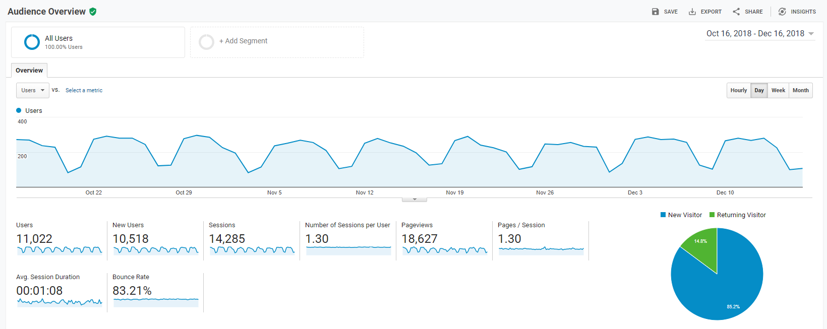 Hopefully one of the big improvements to the site’s SEO will be from the speed increases (see the Speed section below). Below is a graph of the numbers of users per day for the last two months on the Wordpress blog: