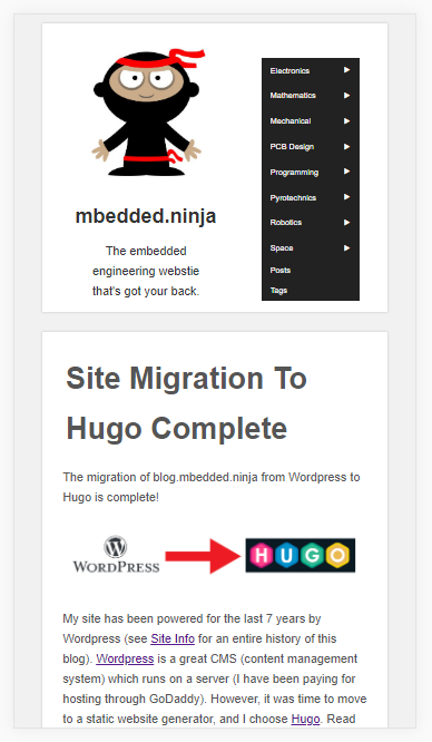 Site was migrated from Wordpress to Hugo! See the Site Migration to Hugo Complete update for more info.