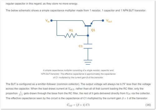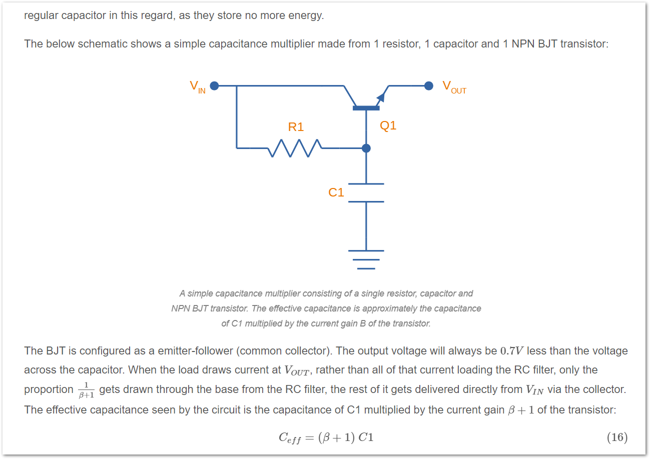 Added schematics, equations, worked examples, and bode plots on Capacitance Multiplier circuits.