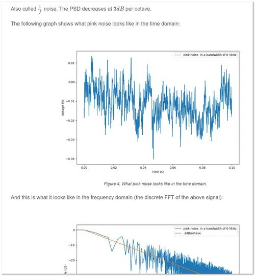 Updated the Electrical Noise page with info on the various “Colours of Noise” including graphs (in both the time and frequency domains) of white, pink, red, and blue noise.
