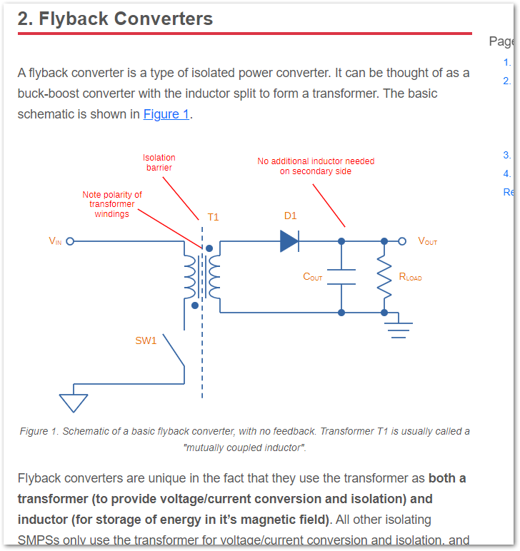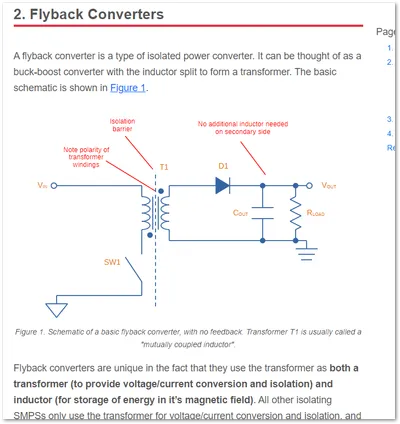 New Isolated Switch Mode Power Supplies page, with info on flyback converters including basic schematics and feedback using optoisolators.