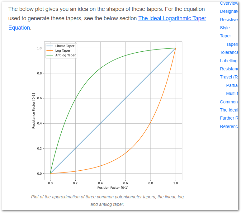 - Added graphs and equations on potentiometer tapers and info on potentiometer independent linearity.