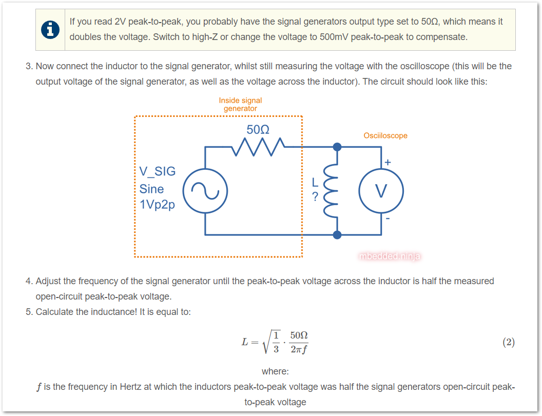 Added a how-to on an easy method for measuring inductance using a signal generator and oscilloscope.