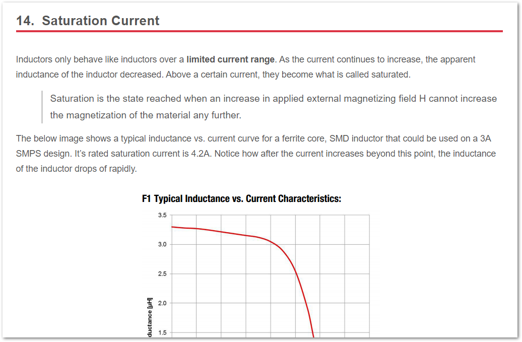 - Updated info on the saturated current of an inductor.