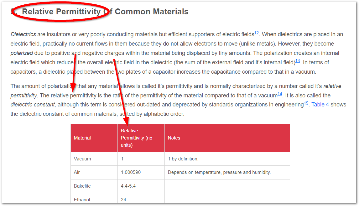 Changed the references to dielectric constant to relative permittivity, as the former term has been deprecated (mostly on the Capacitors page).