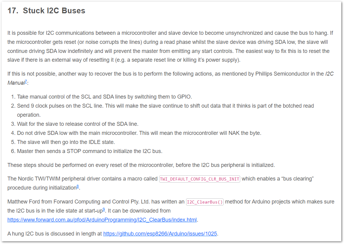 Added info on stuck (hung) I2C buses and how to recover from them.