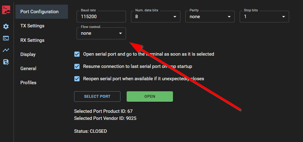 You can now specify a custom baud rate, and updated the default baud rates to include more common options.