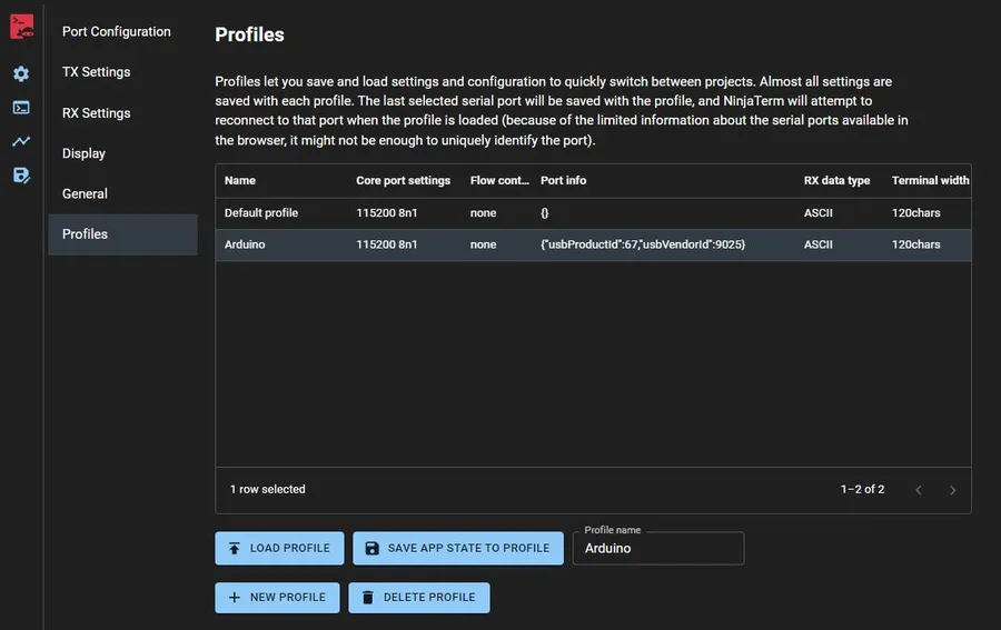NinjaTerm has a new profiles feature which lets you save and load different serial port configurations.