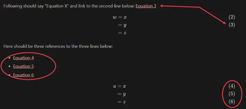To get around this, I add \htmlId{}{} markers in the Katex and implement the reset of the logic for equation referencing in the client-side IRefClientScript.js script (which already does the figure and table referencing).