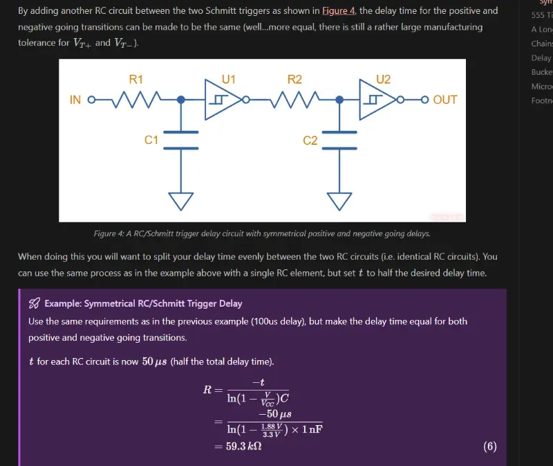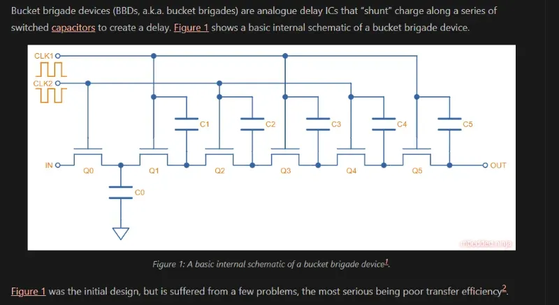 Added a new page on creating digital and analogue delays. This includes delays using RC/Schmitt triggers, 555 timers, long pieces of wire, delay line ICs, bucket brigade delay ICs, and microcontrollers.