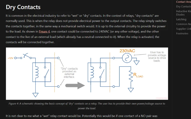 Added info on what is meant by “dry” contacts in the context of relays to the Mechanical Relays page.