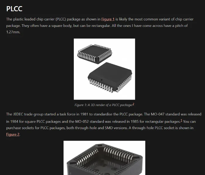 Added information about chip carrier packages, including PLCC, LCC, LCCC, and BCC.
