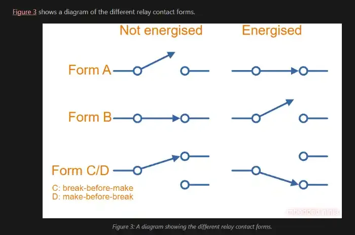 Added information about relay contact forms, e.g. Form A, Form B, Form C, Form D, and Form X.