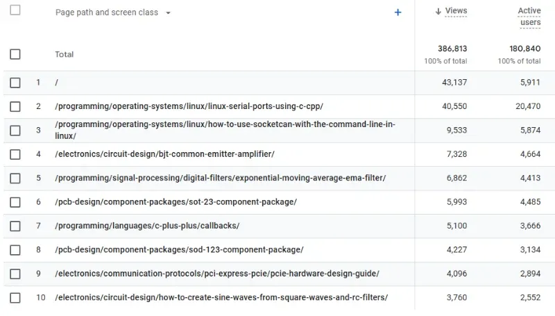 2024 saw 505k (505,000) page views for blog.mbedded.ninja! This was up from 436k last year, an increase of 69k or 16%. This is a placeholder for the reference: fig-stats-graphs shows the page views and other key stats per year.