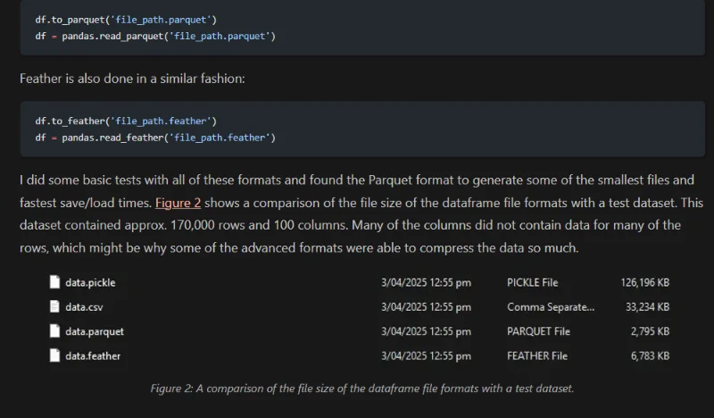 Added info on Pandas saving to Pickle, Feather, and Parquet file formats.